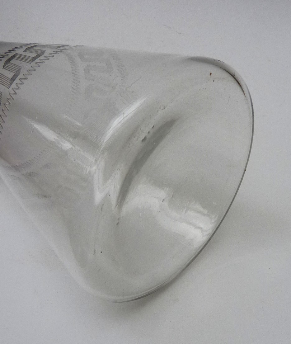 Gegraveerde glazen oorkaraf Griekse Sleutel