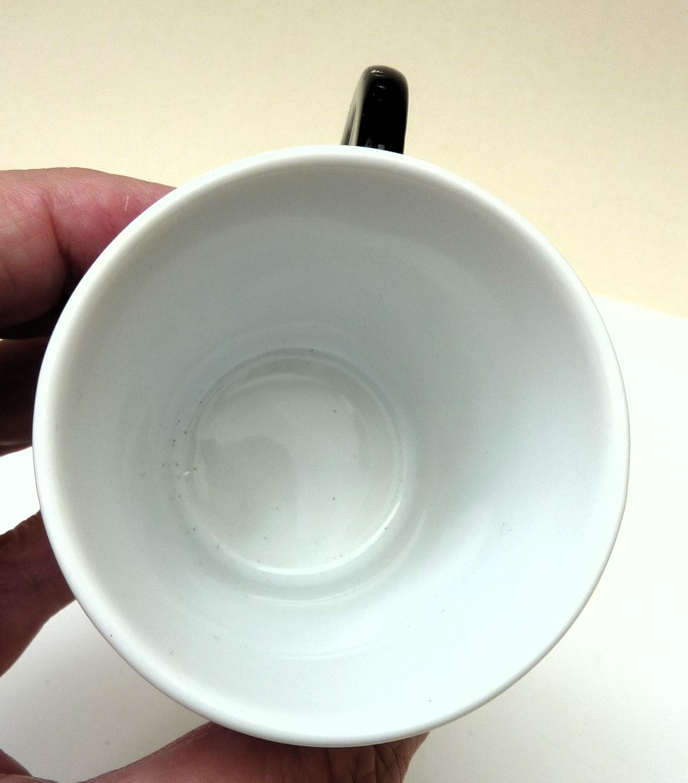 Losse porseleinen koffiekop, zonder schotel, in een ontwerp uit 2012 van de bekende illustrator Piet Paris. Uitgevoerd door Jansen + Co voor de Amsterdamse winkel Options. . Verzamelaarsitem. Het kopje is gedecoreerd met de voor Paris zo bekende Silhouette vrouwfiguur in zwart, met rode strik. Deze laatste is in reliëf aangebracht.