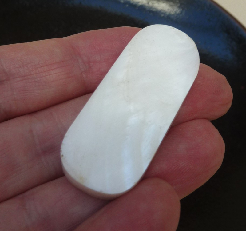 Vier paar chopsticks gemaakt van palissandrehout (rosewood), afgewerkt met off white parelmoer. De bijpassende stokjesleggers zijn gemaakt van porselein, afgewerkt met een laagje parelmoer.