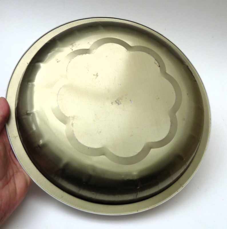 Afmetingen: doorsnede 26,5 cm, hoogte 3,5 cm.