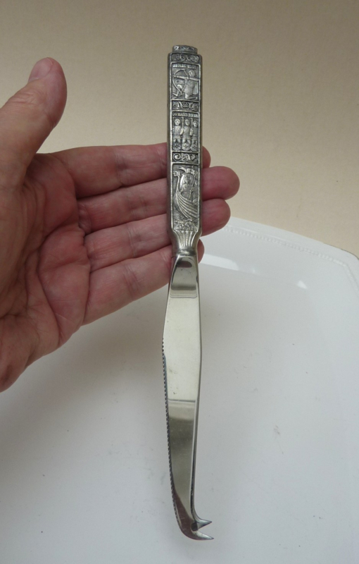 Artikelnummer: BD2210251Hardanger Norway roestvrijstalen kaasmes met tinnen handvat in patroon Kongetinn.