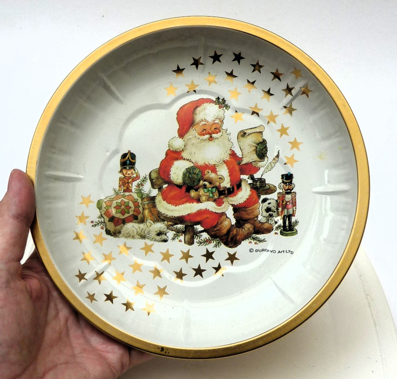 Vintage kerstschaal gemaakt van blik.