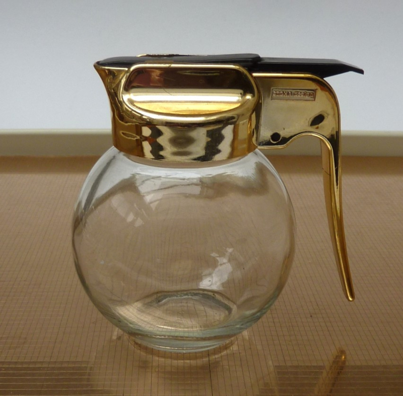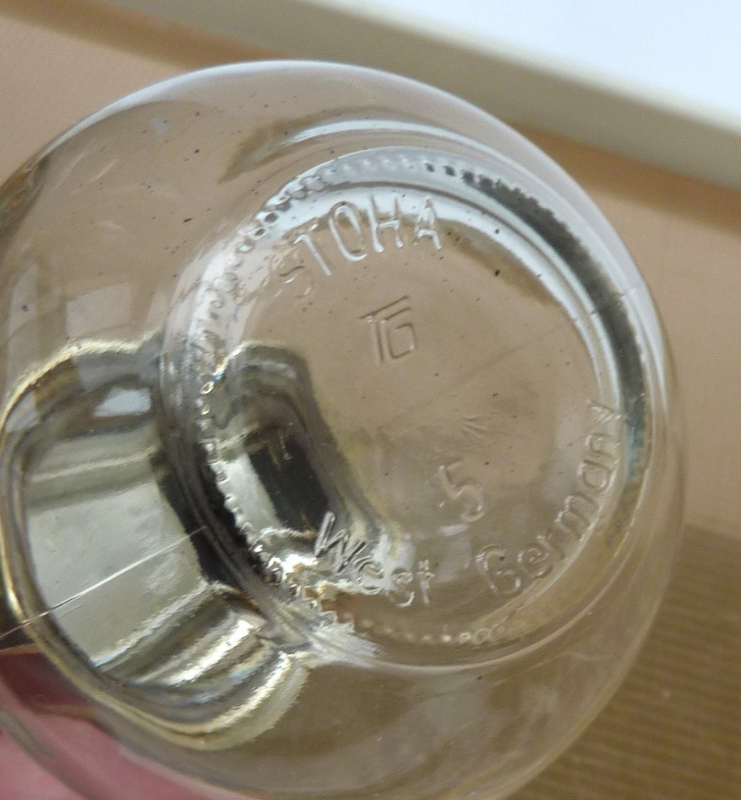 Suikerdispenser van de Duitse fabrikant Stoha, met goudkleurig kunststof montuur en doorzichtig glazen pot. Jaren 60.