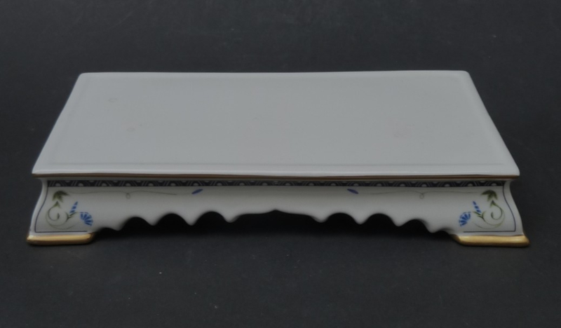 Afmetingen: het onderblad 21,5 cm x 12 cm. Het suikerpotje en roomkannetje 7,5 cm x 7,5 cm en 10 cm hoog.