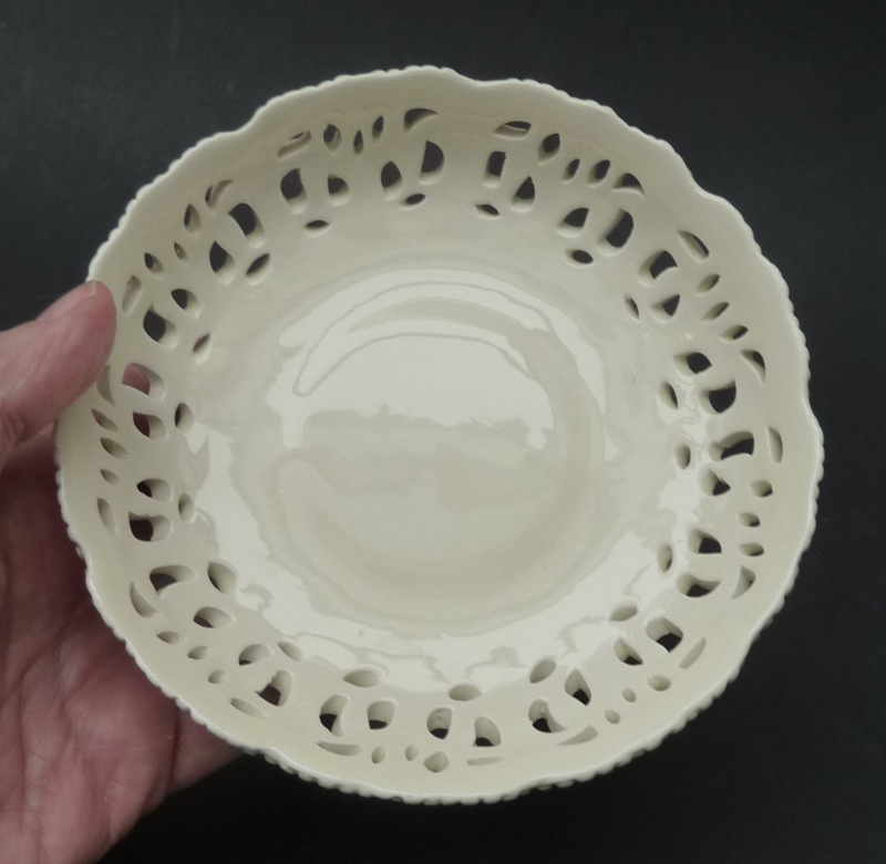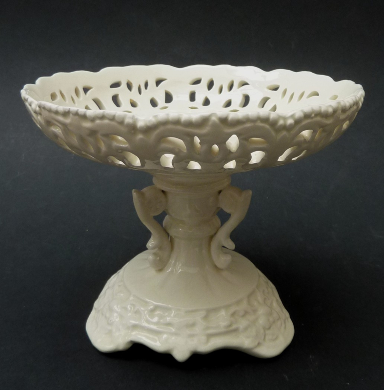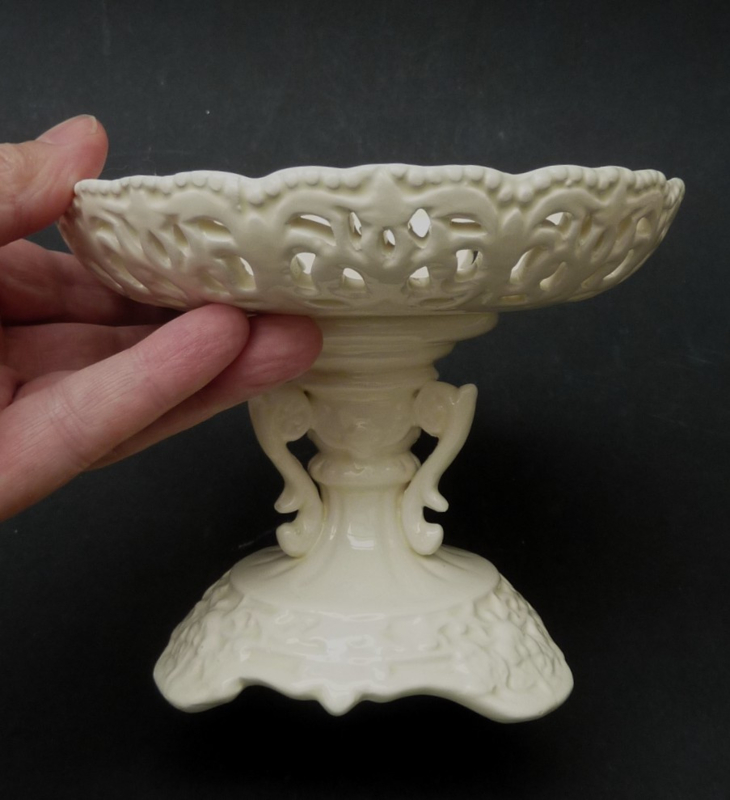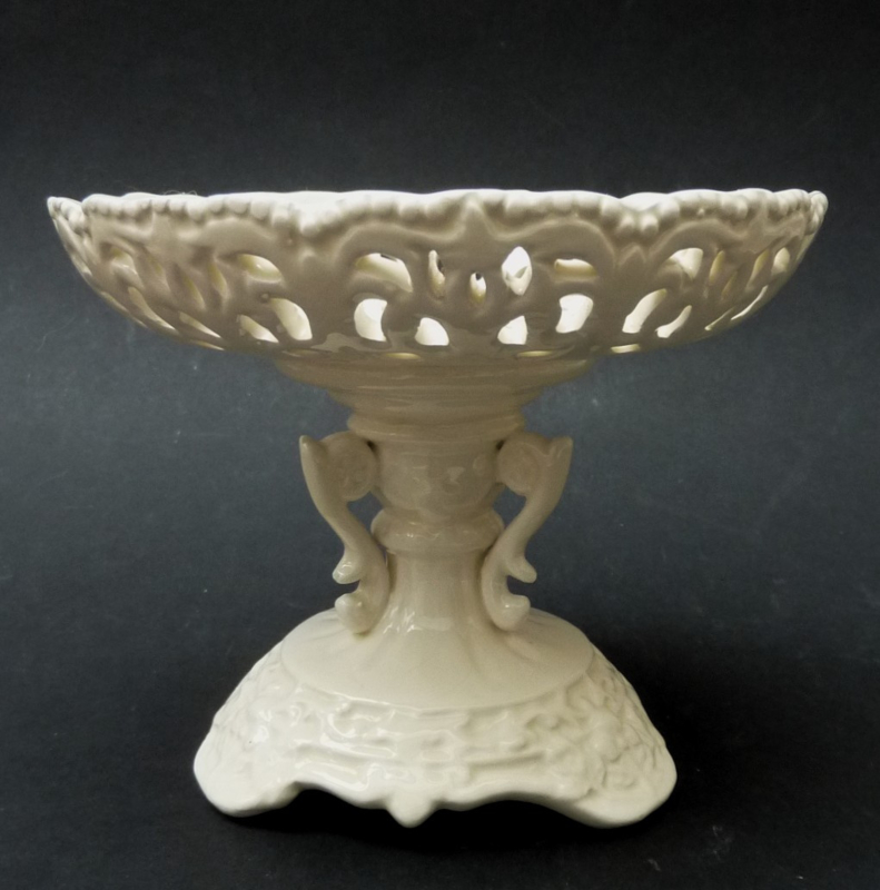 Off-white keramisch bonbonschaaltje op sierlijke voet.