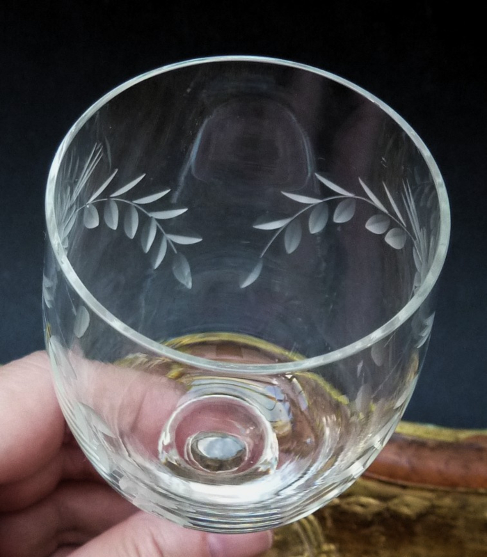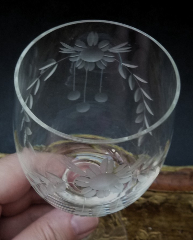 Kristallen dessert wijnglazen met bloem guirlande gravure