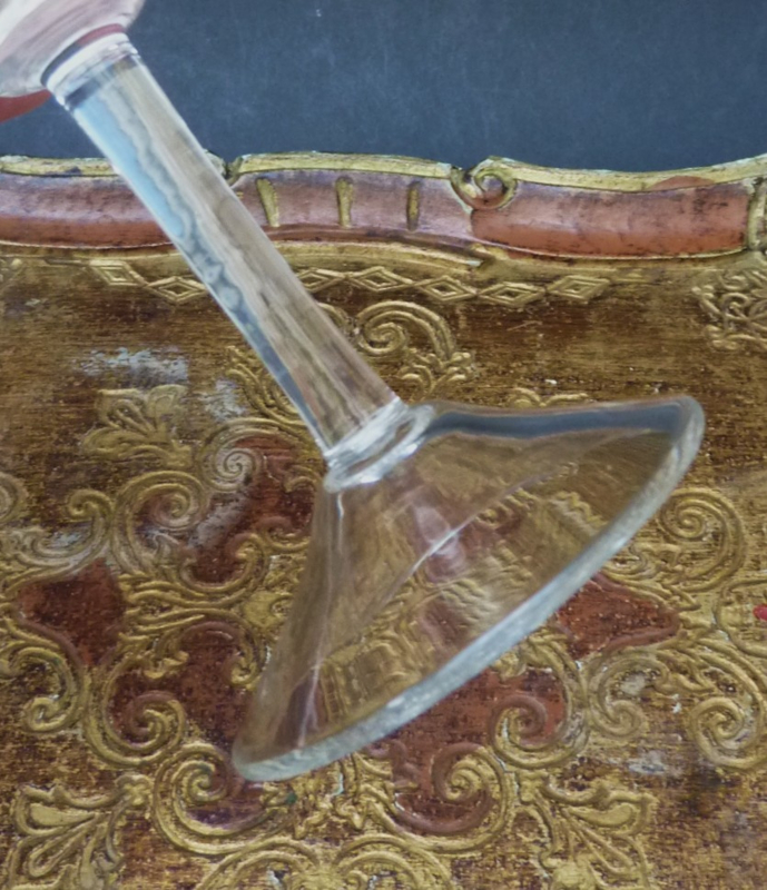 Afmetingen: hoogte 16,5 cm. Doorsnede kelk 5,5 cm, doorsnede voet 6,5 cm.