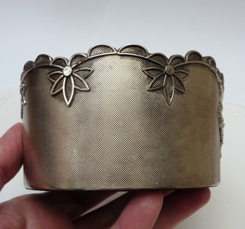 Afmetingen: doorsnede 11 cm, hoogte 6 cm.