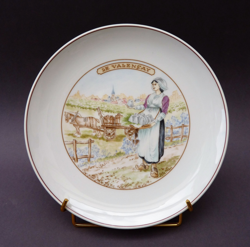 Artikelnummer: SD464Set van zes porseleinen kaasborden gemaakt door de Franse bistroware producent Pillivuyt. De borden hebben verschillende decors van het Franse plattelandsleven waarin een kaassoort centraal staat. Afgebeeld zijn; Le Camembert, Le Valençay, Le Reblochon, Le Brie, Le Roquefort, Le Munster. Bruine bies langs de rand.