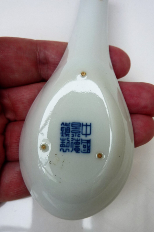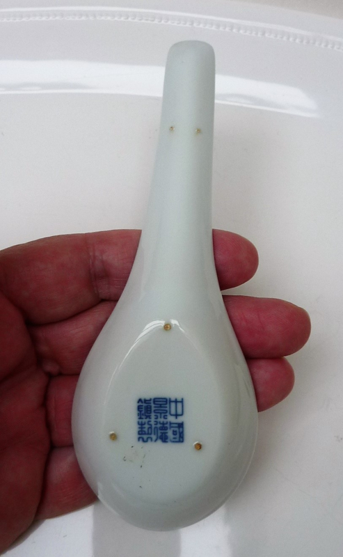 Chinese blauw wit porseleinen lepel met pagode