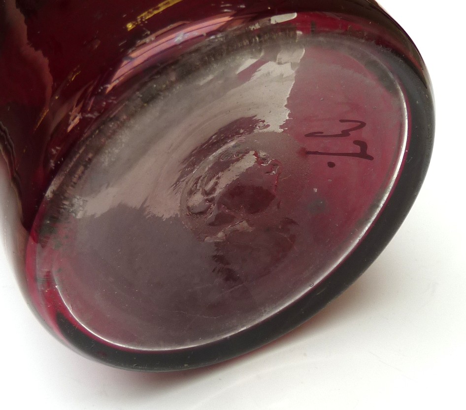 A pair of Bohemian ruby red glass bottle decanters late 19th century