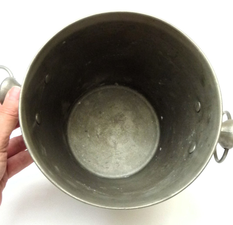 Art Deco wine or champagne bucket made of aluminum. Beautiful patina. Two sturdy knob handles with rings.