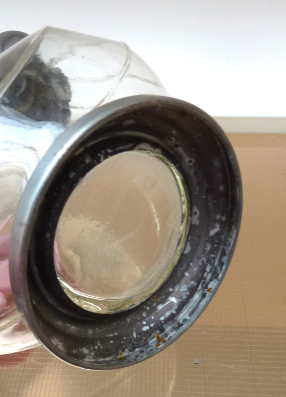 Crystal decanter with a pewter frame in the shape of a duck, a so-called "Kalte Ente" decanter.