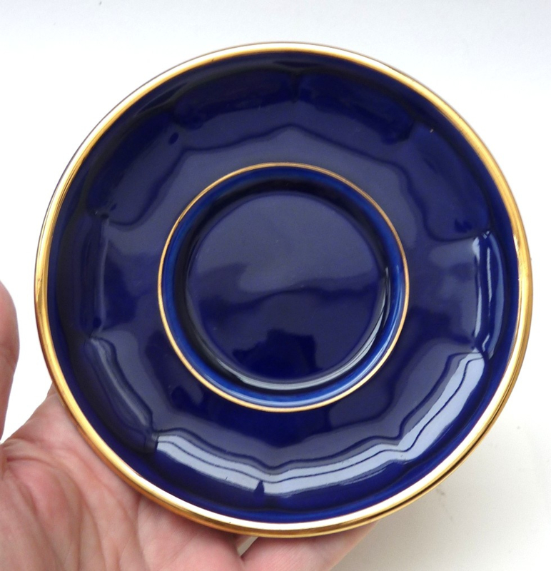Apilco cappuccino cup with saucer cobalt blue with gold