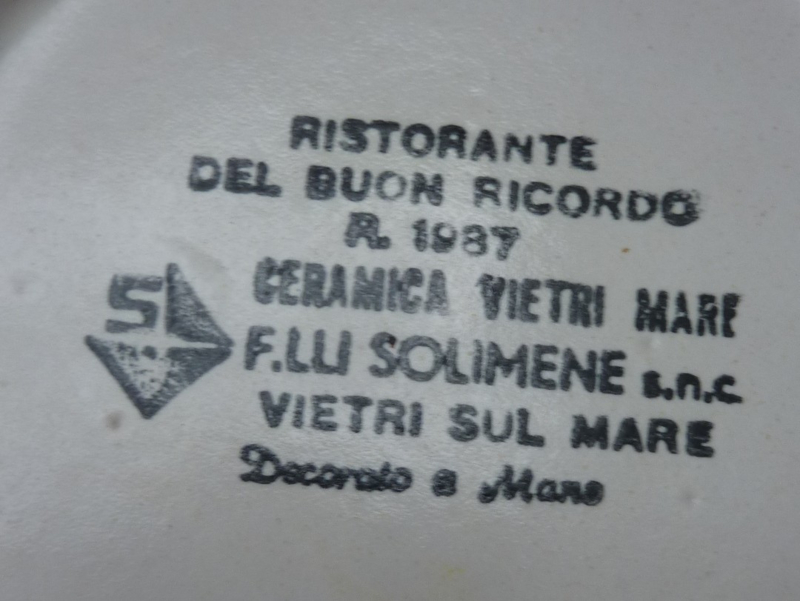 Solimene Vietri piatto Buon Ricordo Tre Pini Milano 1987