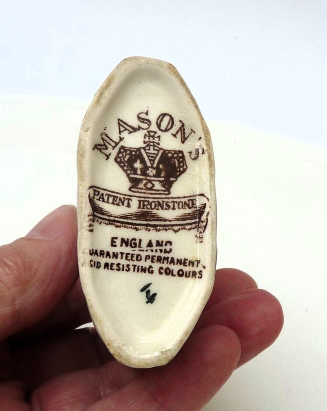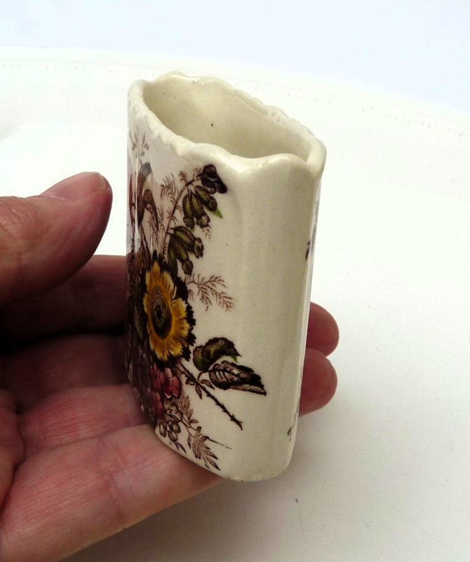 A Mason's ironstone toothpick holder in pattern Fruit Basket multi-color.