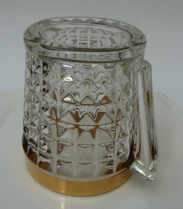 Hollywood Regency Mid Century pressed glass gold band ice bucket