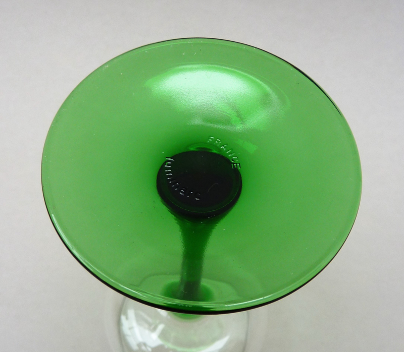 Luminarc France Alscace wine glass on green stemLuminarc wine glass for white wine on a straight green stem.