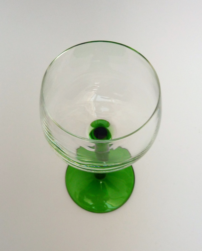 Luminarc France wine glass with green stemLuminarc wine glass for white wine on a slender green stem.