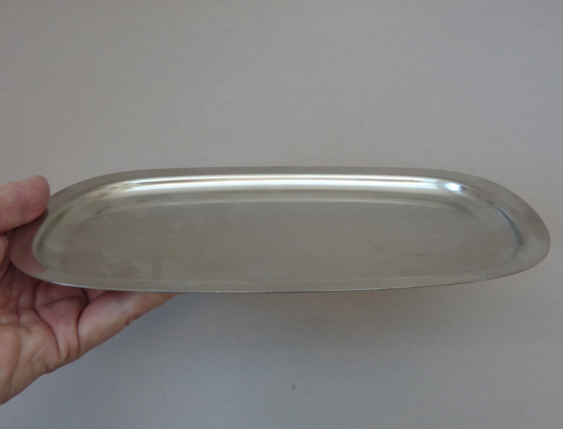 Stainless steel Alessi creamer set tray or for serving a cup of espresso with a treat.