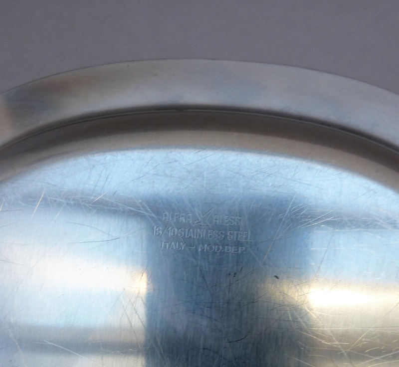Marked on the back: Alfra Alessi, 18/10 stainless steel, Italy, mod. the P.