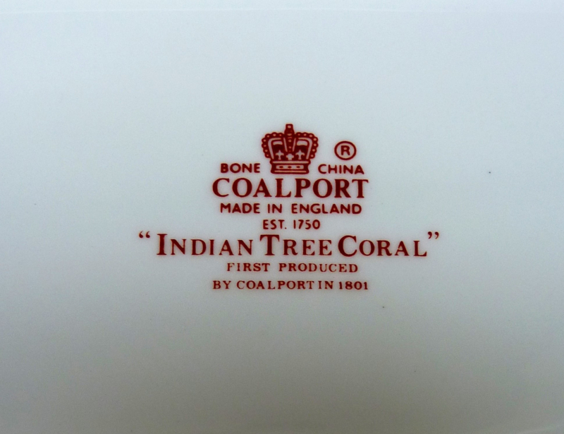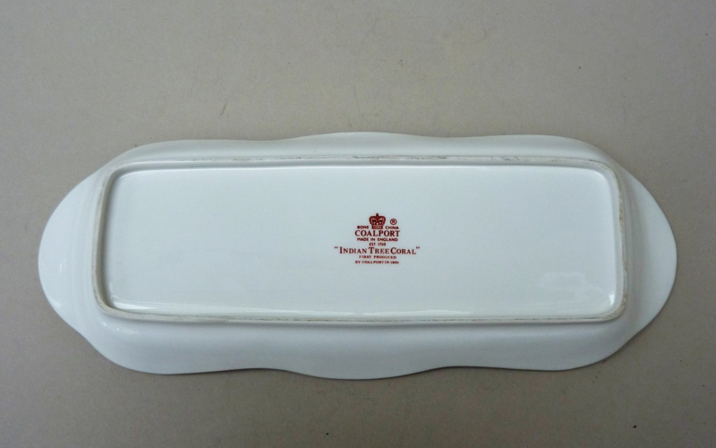 Coalport oblong porcelain dish decorated with pattern Indian Tree pattern in the color Coral.