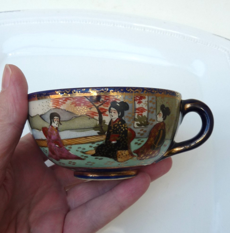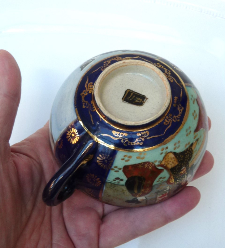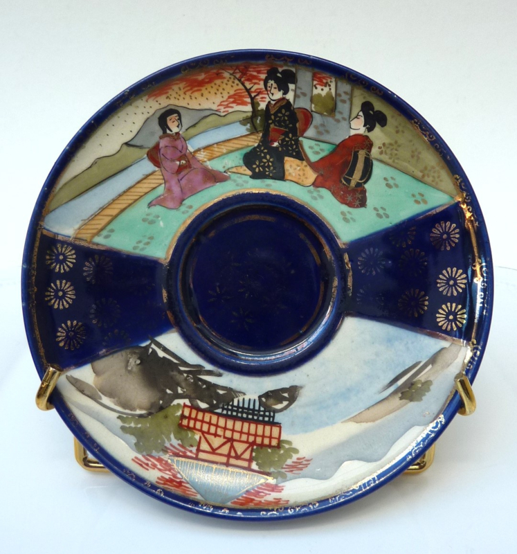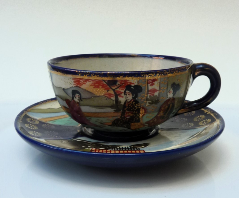 Japanse Taisho Satsuma Gosu Cobalt Blue cups with saucers