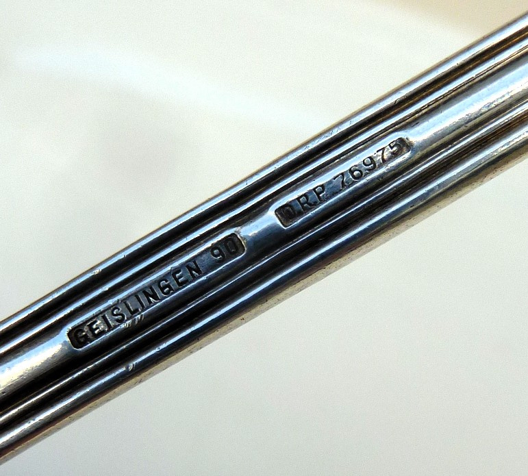 Marked on the back of the handle: Geislingen 90, DRP 76975. Dated 1898 - 1903.